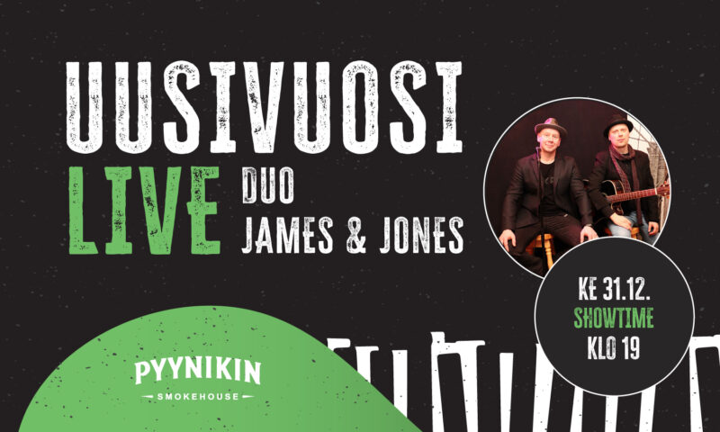 Illan esiintyjänä DUO: James & Jones Englanninkielisiä klassikoita 60-luvulta 2000-luvulle- Beatlesista Deep Purpleen, Ghostin kautta Foo Fightersiin ja Elvikseen. Mukana myös Red Hot Chili Peppers, Guns N’ Roses ja paljon muuta!